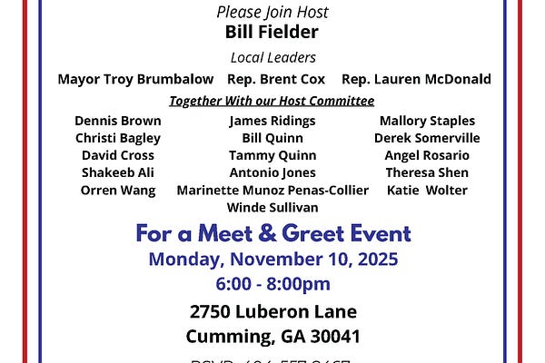 Hank's Forsyth County Friends and Supporters Are Invited to November 10 Meet & Greet - Share With Your Local Friends and Neighbors