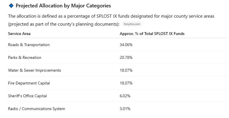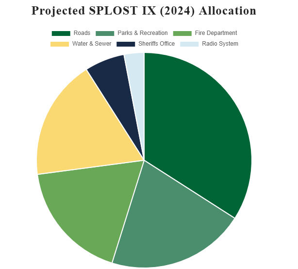 In 2024, voters approved a six-year 1% SPLOST referendum. However, they were not given the opportunity to decide how those dollars would be spent. Those who control the vote on the county commission have decided the allocation percentages you see. The good thing is that, because the commissioners decided those percentages, they can also change them.