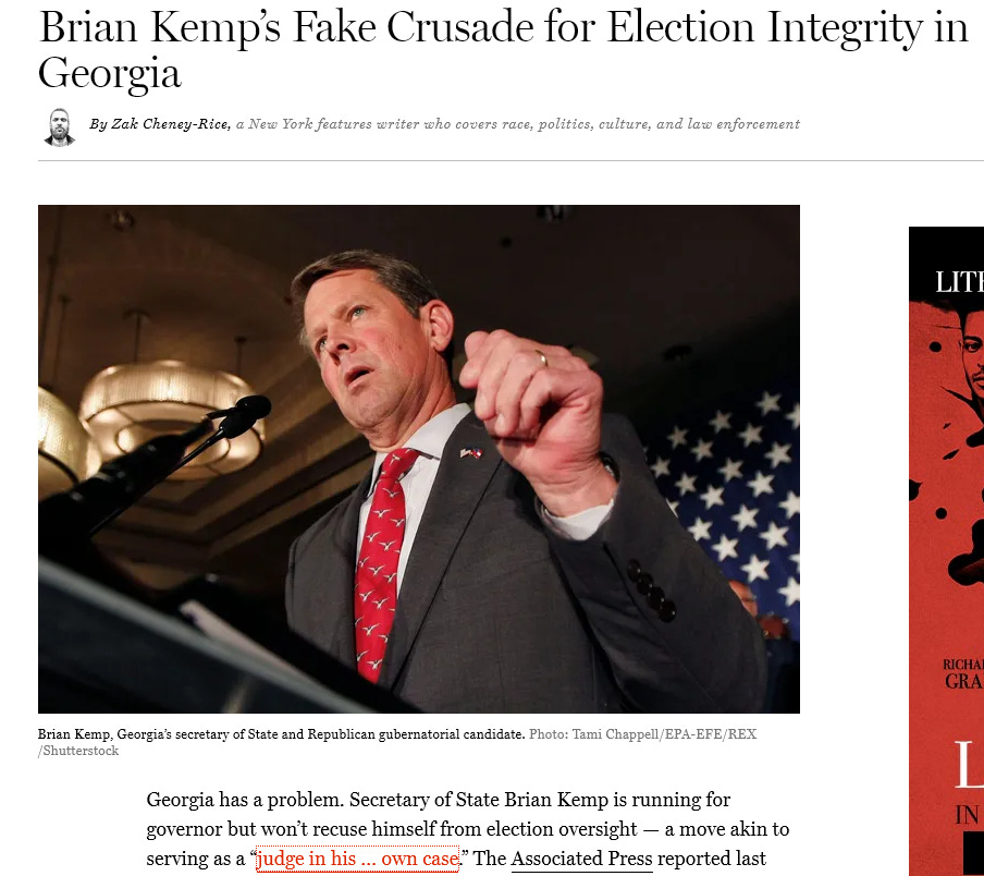 So, as it turns out, the “reckless behavior, inexcusable conduct, gross incompetence and undeniable ineptitude,” which according to Kemp was the reason for closing CES and moving its functions directly under his personal control, according to Kemp’s new attorney of record, Ryan Germany, turned out to be certain election workers simply following “standard operating procedure.”