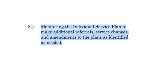 In short, Representative Jones’ patented system is the unique product, equipment and technology which can meet the specs Representative Jones wrote into his sponsored legislation. Therefore, it is undeniable that Representative Jones intended for his company to provide the monitoring, the data collection, predictive analytics and artificial intelligence necessary to devise individual service plans for every client in the HB520 system, regardless of their mental state or situation, a function which happens to fulfill a primary mandate of the still-active 2010 DOJ Settlement with Georgia, as shown below, requiring, “Monitoring the Individual Service Plan to make additional referrals, service changes, and amendments to the plans as identified as needed,” concerning those individuals the State of Georgia and/or certain local jurisdictions consider either mentally ill, or who as a result of their condition or situation fall under the “mental illness” legal umbrella.
