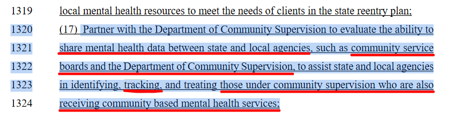 Building on the fact that in HB520 “monitoring” includes “tracking,” we recall that during the 2022 General Assembly Representative Jones also sponsored HB1013. In that mental health bill, the precursor to HB520, Jones specified “tracking” to be one of the activities required under its authorities.