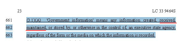 HB520 defines the term, “government information” brought in from lines 343-352 above to mean the following,