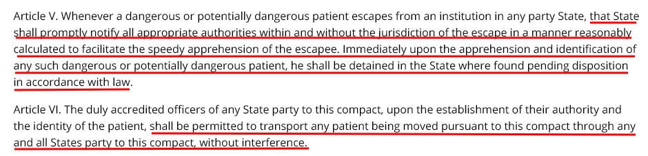 And so, here again, as we have seen with the other requirements in HB520, the need for a collaborative database and collaborative jurisdictions is unique to Talitrix. Furthermore, we should notice what Representative Jones says to the Tennessee legislators in the full video, that Talitrix is presently in three states. At the time of their 2021 presentation, Jones and Representative Gravely were actively pursuing the deployment of the Talitrix system in a fourth, Tennessee, a neighboring state to Georgia. That is important because once the Talitrix system would be deployed to its fullest among adjoining states, as state-wide legislation like HB520 could help bring about, the jurisdictions defined by those states could also “collaborate,” stitching together a state-by-state tracking grid with the ability to monitor and predict the behavior of individuals, as legally required to be tracked by any local authorities within the geographic boundaries of the resulting jurisdictional footprint. The opportunities for misuse of such a system should be apparent. A law creating these kinds of multi-state jurisdictional authorities, which would be used to pair private operators with collaborative public databases, using public financing, is a dark undertaking presenting serious dangers for a free society. That law stitching together these state-to-state jurisdictions, OCGA § 37-10-2, specifically sections V and VI of the Interstate Compact on Mental Health (see below), is already on the books, and under HB520 could be used to effectively establish a multi-state, or even nationwide Talitrix jurisdictional partnership complete with government-maintained collaborative database, combining every state under the compact into one jurisdiction, only limited in reach by oceans to the east and west, and foreign nations to the north and south.
