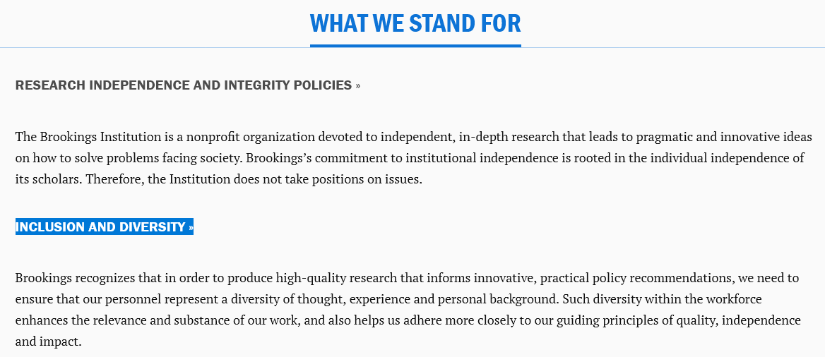 The professed purpose of the Brookings Institute is to “strengthen American democracy; foster the economic and social welfare, security, and opportunity of all Americans; and secure a more open, safe, prosperous, and cooperative international system.” That intention also translates into promoting regime-change operations around the world and installing puppet governments to achieve what it terms, “safety, prosperity and cooperation among nations,” but solely within the American sphere of influence.